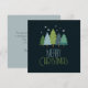 Einfache, moderne Weihnachtsbäume in Grün- und Blautönen sorgen für Winterfröhlichkeit. Passen Sie den Text auf der Vorder- und Rückseite an: Ändern Sie den Gruß, die Nachricht und die Unterschrift, wie Sie möchten.
