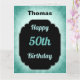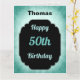 Stilvoll blau und schwarz personalisierte 50. Geburtstag Design Grußkarte.