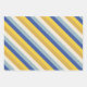 Moderne blaue, hellblaue, gelbe, goldene, cremefarbene Streifen Muster sortiert Hanukkah Geschenk Wrapping Paper Sheets. Horizontale Streifen, vertikale Streifen und diagonale Streifen aus Mustern Umwicklungspapier.