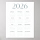 Moderne Blaugrau 2026 Kalender Einfach Einseitig Poster