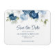 Elegante florale Aquarellenhochzeit in Blau, Weiß und Marinebouquet speichern den Dattelmagneten. Die Karte verfügt über ein Skript "Save the Date", das in einen Schriftart Ihrer Wahl geändert werden kann, der hier verfügbar ist, wenn Sie auf "Personalisieren" klicken.