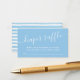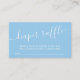 Baby Shower Diaper Raffle Ticket Card mit einem handgeschriebenen, kalligraphischen Skript-Schriftart-Set auf blauem Hintergrund und koordinierendem Streifen zurück für eine besondere Touch.
