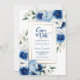Moderne Blue Floral Wedding rettet das Datum Einladung