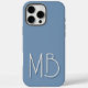 Moderne Blue Gray Monogram Initials Contemporary Phone 16 Pro Max Hüllen verfügen über ein maßgeschneidertes personalisiertes Monogramm in moderner Schriftzypografie. Ideal für Familie und Freunde zum Geburtstag, Weihnachten, Feiertagen, Muttertag, Vatertag und vieles mehr. Designed by ©2024 Evco Holidays www.zazzle.com/store/evcoholidays