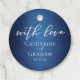 Schöne dunkelblaue Farbtöne schaffen eine Textur wie Wasser auf diesem Abend Gastgeschenk Hochzeit Tag. Ideal am See oder am Ufer, dank der Tags für eine Zeremonie am See mit Blick auf das Wasser. Elegantes, weißes, minimalistisches Skript mit Ihren Details über einen Verlauf, der sich anfühlt, als ob Sie unter Wasser schwimmen.