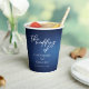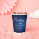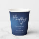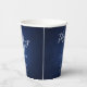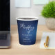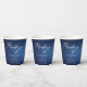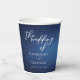 Schöne dunkelblaue Farbtöne schaffen eine Textur wie Wasser auf diesem Abend Hochzeitspapier-Tasse. Perfekte Dekoration am See oder am Wasser für eine Zeremonie am Empfang mit Blick auf das Wasser. Elegantes, weißes, minimalistisches Skript mit Ihren Details über einen Verlauf, der sich anfühlt, als ob Sie unter Wasser schwimmen.