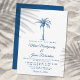 Moderne Blue Palm Tropical Beach Hochzeit Einladung