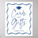 Erweitern Sie Ihre Abschlussfeier mit diesem Modern Blue Wavy Frame Karten und Geschenkzeichen. Dieses Schild mit einer Graduationskappe oben zeigt "Karten und Geschenke" in fett blauer Schrift, gerahmt von einem blauen, wellenförmigen Rahmen auf weißem Hintergrund. Personalisieren Sie das Retro-inspirierte Zeichen mit Ihrem eigenen Text, um es für Ihre Feier zu einem besonderen Erlebnis zu machen. Wählen Sie aus den Optionen für berufliches Drucken oder sofortiges Herunterladen. Dieses Schild eignet sich sowohl für High School- als auch für Uni-Abschlüsse und verleiht Ihrem Party einen modernen, stilvollen Flair.