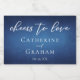 Schön dunkelblaue Farbtöne verleihen diesem Abend eine Art Wasser auf dem Label für die Mini-Champagner-Hochzeit. Ideal für eine Zeremonie am See mit Blick auf das Wasser oder direkt am See. Elegantes, weißes, minimalistisches Skript mit Ihren Details über einen Verlauf, der sich anfühlt, als ob Sie unter Wasser schwimmen.