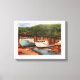 Moderne Blues und Braun Fischerdorf Canvas Print. Mit dieser Leinwand, die Titled' Zuhause im Fishing Village', können Sie die ruhige Schönheit des Lebens am Meer erleben. Mit 2 Fischerbooten, die während der Ewigkeit auf dem Damm ruhen, trifft der schlammige Meeresgrund auf Pfützen mit blauem Meerwasser und schafft so eine ruhige Umgebung. Die Kulisse zeigt den charmanten Pfahl und die grünen Berge, was dieses Kunstwerk zu einer perfekten Ergänzung zu jeder Küstendekoration macht. Genießen Sie Ihre Shopping Adventures! Artist Tanya Arseneau Nanniesfineart