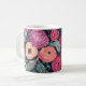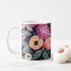 Unsere Tasse bietet Blume in Rot-, Gelb- und Rosa-Farbtönen auf schwarzem Hintergrund.