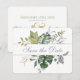 Diese elegante Save the Date-Karte zeichnet sich durch ein auffallendes blau-grünes Blatt-Design aus, das mit der modernen Blume übereinstimmt | Blue & Green Wedding Thema. Bearbeiten Sie alle Details auf der Rückseite: Hochzeitdatum, Namen, Ort