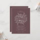 Diese moderne Blumen-Rahmen-Hochzeitseinladung zeigt die elegante, weiße Botanische Linienkunst in einem spiegelroten Design über und unter den Namen des Ehepaares, das mutig in einem zeitlosen Serif-Schriftart zentriert ist. Der tiefe mauve Hintergrund verleiht der Touch eine warme und raffinierte Atmosphäre, die perfekt für romantische, rustikale oder Herbsthochzeiten geeignet ist. Diese vollständig anpassbare Einladung lasse Ihnen, den Namen, das Datum, die Uhrzeit und den Veranstaltungsort individuell zu gestalten, indem Sie modernen Minimalismus mit anmutigen Blumenblättern verbinden. Die strukturierte Anordnung und symmetrische Blume schaffen einen feinen und unvergesslichen ersten Eindruck für Ihre Feier.