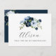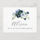 Ein schönes, modernes Blumendesign mit eleganten dustigen blauen und marineblauen Blumen. Text und Farben können personalisiert sein.