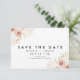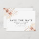 Moderne florale Orchards Wedding Save The Date Card Einfach und minimalistisch im Stil blumengeschmückter Hochzeit speichern Sie die Dattelkarte mit zwei Aquarellarrangements mit Rose, weißen Obstgärten und Blätter aus Palmen. Die Rückseite der Karte ist mit einer Nachricht und zusätzlichen Details organisiert. Dieses Design ist ideal für ein Paar, das nach einem einfachen, modernen Blumenmuster Save the Date sucht.