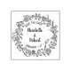 Diese "Save the Date" Gummi-Briefmarke verfügt über einen Blume-Rahmen mit einigen Namen und Datum.