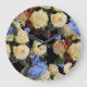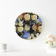 Moderne Blumenmuster, weiße Rosen, blaues Hydrange Große Wanduhr