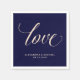 Diese einfachen, romantischen Servietten sagen "Liebe" in einem modernen, rot-rosa Kalligraphie-Stil, auf marineblau Hintergrund. Personalisieren Sie mit Ihren Namen und Hochzeitstermin.