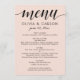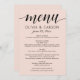 Moderne Blush- und Black Script-Hochzeit Menükarte