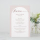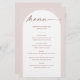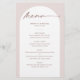 Diese moderne Speisekarte, die sich mit unserer modernen Boho Arch Collection abstimmt, zeichnet sich durch den trendigen und beliebten Bogen in Weiß auf beige-rosa Hintergrund aus und kombiniert mit einem Script-Schriftart. Für eine erweiterte Anpassung dieses Designs, z.B. das Ändern des Layouts, des Schriftartes oder der Textgröße, klicken Sie bitte auf den obigen Button "KENNEN". Bitte kontaktieren Sie mich für weitere Fragen!