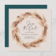 Moderne böhmische Naturpampas Gras Hochzeit Einladung. Atemberaubender, eleganter Drehtext und auf Trend botanisches Blattwerk. Moderne aquamarine Akzent-Farbe.