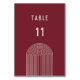 Moderne Tischnummer Card in dunkelbeerrot und hellcremeweiß mit kräftiger, sauberer Typografie und einem Bohbogen auf der Kartenrückseite. Passen Sie diese Hochzeitskarte an, um Ihren Bedürfnissen gerecht zu werden, ändern Sie Textelemente und Farben, wenn Sie möchten. Benutzen Sie diese Tischnummer-Karte auch für eine weitere Feier wie Geburtstag, Catering, etc. Eine passende Hochzeitssuite in meinem Shop erhältlich.