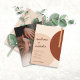 Eine moderne und elegante Hochzeitseinladung, die ein boho 70er Retro-Ambiente mit abstrakten Rundkreisen und rechteckigen Formen in monochromen Erdtönen aus Terrakotta, Bronze Orange und Beige verleiht. Personalisieren Sie die Einzelheiten der Hochzeit und das Foto.