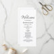 Modernes Boho Wedding Zeremony Programm, mit einem lässigen Skript Typografie-Design. Set auf einem einfachen, weißen Hintergrund, Sie anpassen mit Ihren eigenen Informationen. Eine einfache und elegante Ergänzung zu Ihrem besonderen Tag