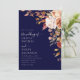 Moderne Boho Navy Blue Burnt Orange Floral Wedding Einladung