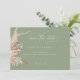 Ein elegantes, modernes boho blumengrün-Design mit einem skurrilen, modernen Save the Date Drehbuch macht die ideale Hochzeitsankündigung für Familie und Freunde. Einfache Anpassung an Ihre persönlichen Daten. Sehen Sie sich die passenden All In One Hochzeitseinladungen mit angehängten RSVP Karten in unserer Sammlung oben an.