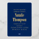 Mit unserer modernen, mutigen Typografie 2024 Graduation Party Blue Foil Einladung kündigen Sie Ihr Abschluss stilvoll an. Diese elegante Einladung verbindet zeitgenössisches Design mit luxuriösen königsblauen und goldenen Akzenten und schafft so eine bemerkenswerte und unvergessliche Ankündigung für Ihren Meilenstein. Mit Platz für Ihr Abschluss Foto und anpassbaren Text, diese Einladung ermöglicht Ihnen, eine personalisierte Ankündigung, die perfekt die Essenz Ihrer Leistung einfängt zu erstellen. Ideal für Absolventen der Gymnasialschule oder Uni, diese Einladung Set den Ton für ein modernes und elegantes Party. Egal ob Sie eine intime Ansammlung oder eine große Affäre veranstalten, unsere Einladung sorgt dafür, dass Ihre Veranstaltung in Erinnerung bleibt. Mit seinem minimalistischen, aber kühlen Design wird diese Einladung Ihre Gäste beeindrucken und einen bleibenden Eindruck verließe. Machen Sie sich bereit, Ihren Erfolg im Stil mit unserer modernen mutigen Typografie 2024 Graduation Party Blue Foil Einladung zu feiern.