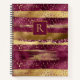Moderne Bordeaux- und Goldpinselstriche und ein Monogramm-Notizbuch mit Pinselstrichen in Bordeaux, Gold und Konfetti.