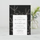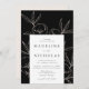 Elegante, moderne Einladungen für Hochzeiten, die Ihre Hochzeitsdetails in Schwarz mit cremefarbenen Linien Blumenzeichnungen auf schwarzem Hintergrund darstellen. Die Einladung kehrt zu einem gesprenkelten beigen Hintergrund oder Farbe Ihrer Wahl zurück. Entworfen, um mit unserer modernen Botanischen Flora Hochzeitskollektion zu koordinieren.