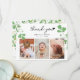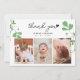 Dieses moderne botanische 3 Foto Collage Baby Dusche Dankeschön Karte ist eine schöne Möglichkeit, um den Freunden und der Familie für die Geschenke und Unterstützung während Ihres Babyduschens zu danken! Das moderne und trendige Design umfasst die drei Fotos Ihres Babys im unteren Teil. Oben befindet sich ein Dankeschön-Header in moderner Handschrift, der mit einem niedlichen kleinen Herzchen endet, und die Details Ihres Babys sind unten in klassischem Schriftart. Die Foto und Texte sind von botanischer Vegetation umgeben: Glückliche Kleeblatt-Blätter! Auf der Rückseite der Karte befindet sich Ihre persönliche Danksagung in einem Rahmen von Kleeblatts. Klicken Sie auf die Personalisierungsschaltfläche, um die Karte mit Ihren Informationen zu ändern.