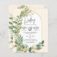 Moderne grüne Blätter mit goldenem Akzent thematische Hochzeitseinladung, moderner Bogen.