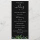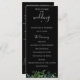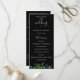 Modernes botanisches Aquarell, schwarzes Hochzeitsprogramm. Das Programm enthält mehrere Zeilen für benutzerdefinierte Textlisten für Zeremonie Reihenfolge der Veranstaltungen, Hochzeitsfeier und Dankeschön zur Kenntnis.