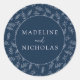Fügen Sie Ihren Hochzeitsdetails eine raffinierte Touch mit unseren eleganten botanischen Hochzeitsklebern hinzu. Diese personalisierten Aufkleber mit ihren Namen in weißer Schrift sind mit einem atemberaubenden Marineschirm und einem zarten, weißen Blattwerk versehen. Diese Hochzeitsaufkleber sind perfekt zum Versiegeln von Umschlägen, Gefälligkeitstaschen oder Geschenkboxen geeignet und vereinen Eleganz und Funktionalität, um Ihren besonderen Tag zu bereichern. Personalisieren Sie sie, um ein schönes, zusammenhängendes Aussehen für Ihre Hochzeitsarbeit und Favoriten zu schaffen!