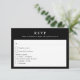 Diese elegante RSVP-Karte zeichnet sich durch ein ausgeklügeltes Schwarz-Weiß-Design aus, das sich perfekt für eine moderne und zeitlose Hochzeitsästhetik eignet. Die Vorderseite zeigt eine klassische UAWG mit raffinierter Serifentypografie, die es den Gästen ermöglicht, bei der Auswahl ihrer Speisen einfach zu antworten. Die Rückseite zeigt ein minimalistisches botanisches Monogramm mit den Initialen des Paares und dem Hochzeitstag, und fügt eine persönliche und stilvolle Touch hinzu. Das stilvolle Schwarz-Weiß-Design schafft ein elegantes und luxuriöses Ambiente. Ideal für formelle, moderne oder klassische Hochzeiten, sorgt diese RSVP-Karte für ein glänzendes und einheitliches Aussehen Ihrer Hochzeitsstiftung.