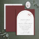 Sie suchen eine moderne und elegante Hochzeitseinladung, die eine Erklärung abgeben wird? Schauen Sie sich nur unsere Botanische Hochzeitseinladung zum Burgundy Arch an! Diese elegante und stilvolle Einladung besticht durch einen weißen Bogen auf einem knusprigen bordeauxfarbenen Hintergrund mit botanischen Akzenten in Aquarelltönen. Das einfache, zarte Drehbuch ist perfekt für eine feierliche Hochzeit, und die passende bordeauxfarbene Krawatte auf der Rückseite der Einladung. Ihre Gäste werden von Ihrem Stil und Liebe zum Detail beeindruckt sein! Warten Sie also nicht länger, bestellen Sie noch heute Ihre Einladungen! Copyright Anastasia Surridge für Elegant Invites, alle Rechte vorbehalten.
