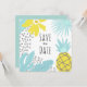 Moderne botanische Sommerhochzeit Save the Date. Die Karte hat ein helles, einfaches Muster tropischer Vegetation. Teil einer Hochzeitskollektion. Karo meinen Shop, um die gesamte Hochzeitssuite für dieses Design zu sehen!