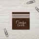 Moderne quadratische Visitenkarte in Braun auf braunem Design, vorne und massiv rot, hinten. Die Grafik dreier blush-Glitzer aussehender Bänder verläuft über die Vorderseite der Karte. Personalisieren Sie den Text nach Ihren geschäftlichen Anforderungen. Eine schöne Karte für sie.