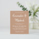 Elegante trendige Typografie-Budget erschwingliche Hochzeitseinladung in einfachen pfirsichbeige-weiße Handschrift mit großen Braut- und Bräutigam-Namen Kalligraphie-Skript. +++++++++++++++++++ Sie können die Farben von Text und Hintergrund ändern, nachdem Sie die weitere Option CUSTOMIZE ausgewählt haben. ++++++++++++ Die Einladung ist für jede Saison - Frühjahr, Sommer, Herbst, Winter - Hochzeitsempfang im Haus geeignet.