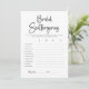 Erleben Sie Ihr modernes Brautparty mit unserer minimalistischen Spielkarte "Scattergories", die Ihnen eine Touch Spaß bei der Feier bietet. Dieses klassische Schwarz-Weiß-Spiel ermuntert zum Lachen und zur Kreativität, da die Gäste Brainstormworte innerhalb bestimmter Kategorien vorstellen, die sich perfekt für ein letztes Mal vor dem Ring eignen. Dieses Brautparty wird garantiert zu einem Hit, und es verleiht Ihren Feierlichkeiten noch mehr Spannung.