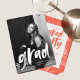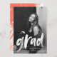 Lädt Guests to celebrate the grad with our foto graduation party invites ein! The modern graduation party Einladungen feature the graduate's foto with "grad" in a white brush script overlay. Personalize the front of the foto graduation party einladung by adding the graduate name, school name and graduation year. The lade reverses to displayour graduation party details with a coral and white brush stroke background.