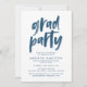Einladende Gäste, um den Abitur mit unserer modernen Abschlussfeier lädt ein! Die trendy Graduierungsparty Einladungen zeigen "grad Party" in einem marinierten Pinsel Schriftart. Personalisieren Sie die kreative Graduiertenparty lädt ein, indem Sie den Namen des Absolventen, den Namen der Schule, das Abschluss Jahr und die Abschlussfeier Details hinzufügen. Die Einladung umgekehrt, um ein Marine-und weißen Pinselstrich Design anzuzeigen.