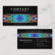 Stilvolle moderne Visitenkarte mit einem größtenteils schwarzen Hintergrund. Zwischen dem Silber stehen farbige Linien, welche stellen die Details eines Mehrfarbenmandala darstellen und einen netten Pop der Farbe zur Verfügung und nehmen diesen Kontakt auf, zu kardieren, heraus von der Menge. Klicken fertigt besonders an, um mehr Kontrolle über Schriftartwahlen und den Gebrauch von Raum für Text zu haben.