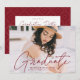 Wir laden Sie ein, mit unseren stilvollen Foto-Abitur-Einladungen den Abitur zu feiern. Die Einladungen zur Graduierung beinhalten das Foto des Absolventen mit "Graduate" in einem bordeauxroten, modernen Kalligrafiebeschild-Overlay. Personalisieren Sie die Front des modernen Abschlusses einladen, indem Sie den Namen, den Schulnamen und Abschluss Jahr. Die Einladung kehrt um, um Ihre Graduierungsparty Details und ein trendige bordeauxrot-weiß gepunktetes geometrisches Muster anzuzeigen.