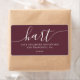Mit diesen modernen burgundischen Rücksendeadressen-Aufklebern mit eleganter Schriftzeichen können Sie Ihre E-Mails aufwerten. Der weinrote Hintergrund mit knusprigen weißen Texten verleiht Hochzeitseinladungen, Urlaubskarten oder dem alltäglichen Schriftverkehr eine raffinierte Touch. Diese Labels sind vollständig mit Ihrem Familiennamen und Ihrer Adresse anpassbar und verbinden klassischen Stil mit praktischer Funktion.
