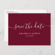 Moderne Burgund-Skriptereien retten das Datum Ankündigungspostkarte