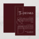 Teilen Sie die wichtigen Details Ihrer Feier mit Stil mithilfe der modernen burgunderroten Monogramm-Minimalismus-Hochzeits-Einschlusskarte, einer verfeinerten Ergänzung, die dazu dient, Ihre Gäste informiert zu halten, während Sie eine schön koordinierte Hochzeitspapeterie-Suite beibehalten. Diese elegante Einschlusskarte verfügt über ein reiches burgunderrotes Farbthema, gepaart mit moderner minimalistischer Typografie und einem eleganten Monogramm-Akzent, der eine persönliche und anspruchsvolle Note hinzufügt. Burgunderrot symbolisiert tiefe Romantik, Wärme und zeitlose Eleganz und ist somit eine perfekte Wahl für Paare, die Herbsthochzeiten, Abendempfänge, Weinbergzeremonien oder klassische romantische Feiern planen. Das saubere und übersichtliche Layout sorgt dafür, dass wichtige Informationen wie Empfangsdetails, Unterkunftsvorschläge, Links zur Hochzeitswebsite, Kleiderordnungshinweise oder Reiseanweisungen klar und stilvoll präsentiert werden, damit sich die Gäste auf Ihren besonderen Tag vorbereitet und aufgeregt fühlen. Was diese Einschlusskarte besonders macht, ist das durchdachte Gleichgewicht zwischen Einfachheit und Eleganz, wodurch jedes Detail absichtlich wirkt und gleichzeitig die Gesamtwirkung Ihrer Hochzeitseinladungssuite ergänzt. Diese Einschlusskarte wurde entworfen, um nahtlos mit passenden Einladungen, RSVP-Karten und Save-the-Date-Karten zu koordinieren, und hilft dabei, eine polierte und zusammenhängende Hochzeitspapeterie